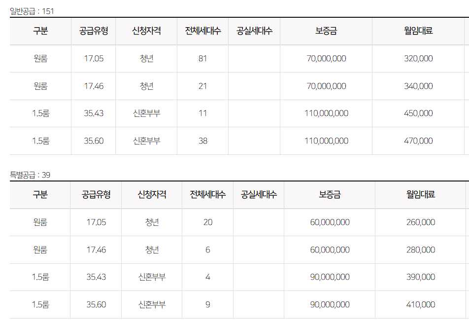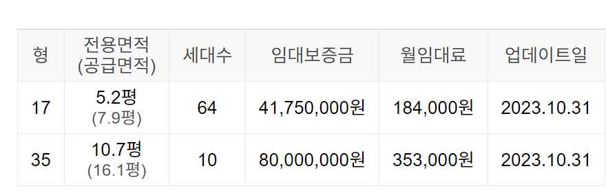 임대보증금 및 월 임대료는 입주자 모집공고일 기준이며, 보증금 최대 전환 시 변동될 수 있습니다.