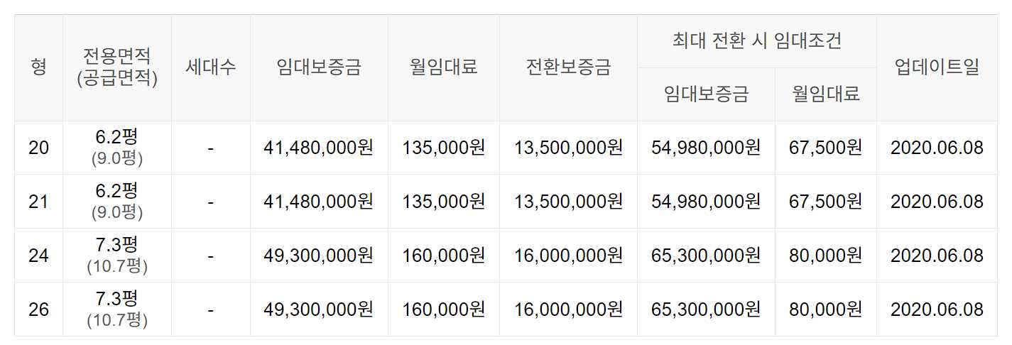 임대보증금 및 월 임대료는 입주자 모집공고일 기준이며, 보증금 최대 전환 시 변동될 수 있습니다.