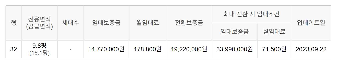 임대보증금 및 월 임대료는 입주자 모집공고일 기준이며, 보증금 최대 전환 시 변동될 수 있습니다.