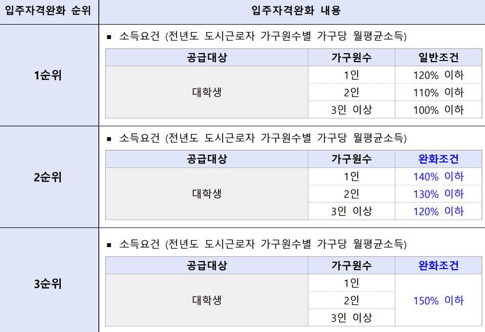 - 신혼부부, 한부모가족 : 무자녀 6년, 자녀1명 이상 10년