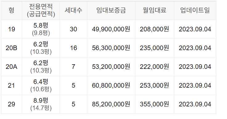 임대보증금 및 월 임대료는 입주자 모집공고일 기준이며, 보증금 최대 전환 시 변동될 수 있습니다.