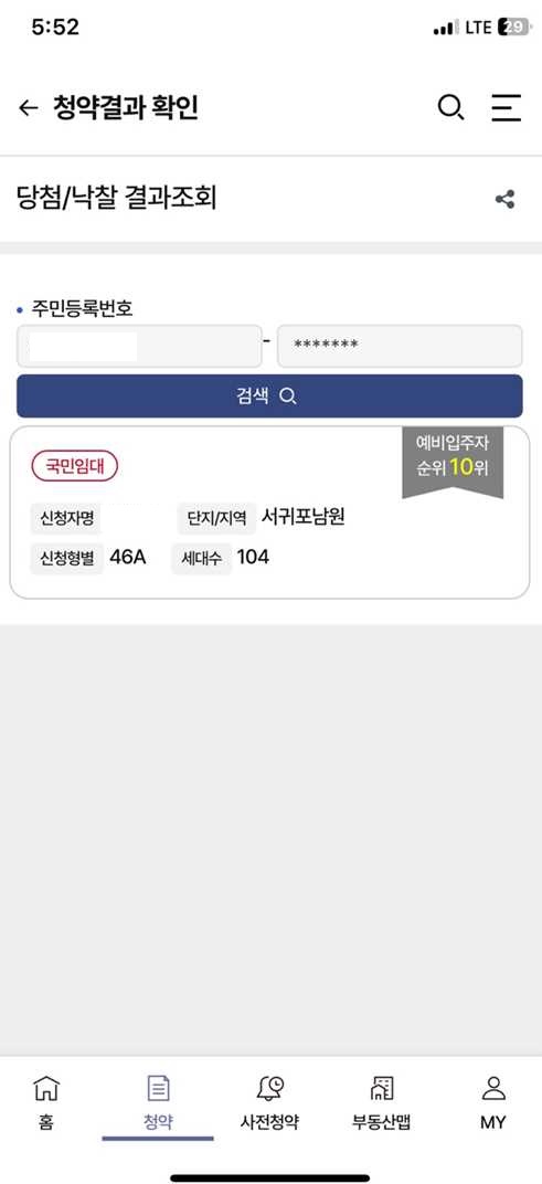 예비입주자 순위 확인