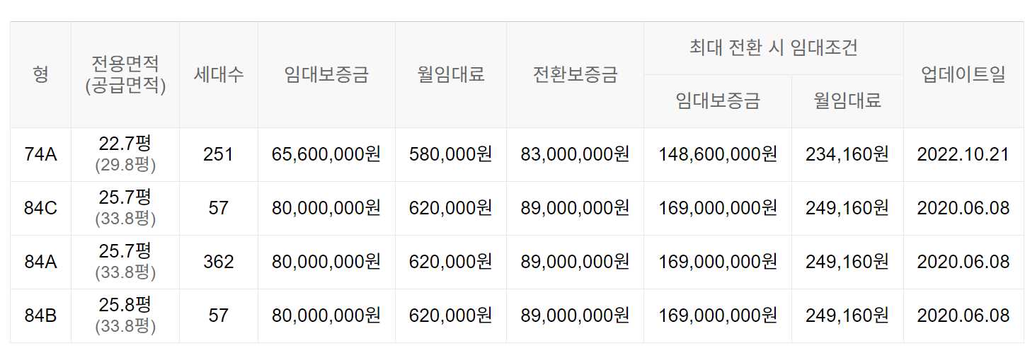 임대보증금 및 월 임대료는 입주자 모집공고일 기준이며, 보증금 최대 전환 시 변동될 수 있습니다.
