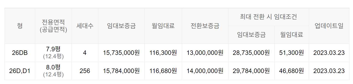 임대보증금 및 월 임대료는 입주자 모집공고일 기준이며, 보증금 최대 전환 시 변동될 수 있습니다.
