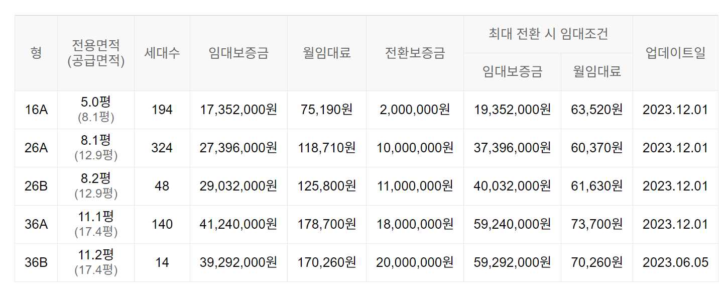 임대보증금 및 월 임대료는 입주자 모집공고일 기준이며, 보증금 최대 전환 시 변동될 수 있습니다.