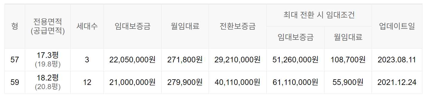 임대보증금 및 월 임대료는 입주자 모집공고일 기준이며, 보증금 최대 전환 시 변동될 수 있습니다.
