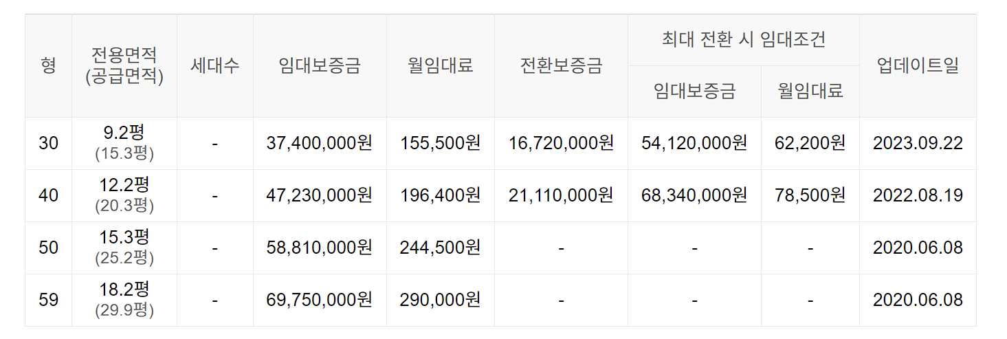 임대보증금 및 월 임대료는 입주자 모집공고일 기준이며, 보증금 최대 전환 시 변동될 수 있습니다.