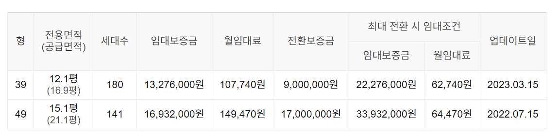 임대보증금 및 월 임대료는 입주자 모집공고일 기준이며, 보증금 최대 전환 시 변동될 수 있습니다.