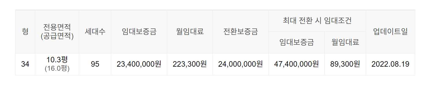 임대보증금 및 월 임대료는 입주자 모집공고일 기준이며, 보증금 최대 전환 시 변동될 수 있습니다.