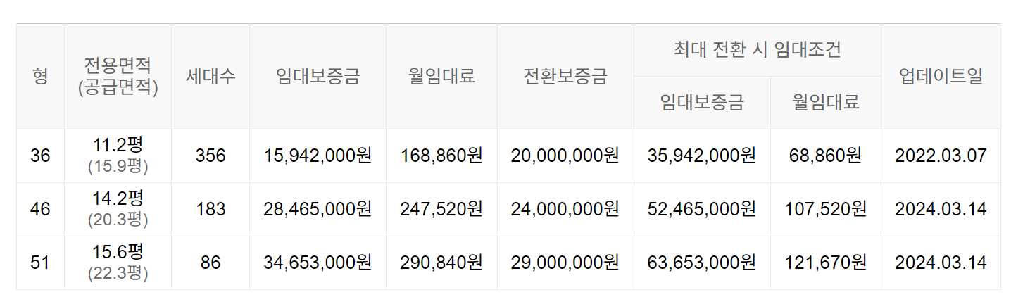 임대보증금 및 월 임대료는 입주자 모집공고일 기준이며, 보증금 최대 전환 시 변동될 수 있습니다.