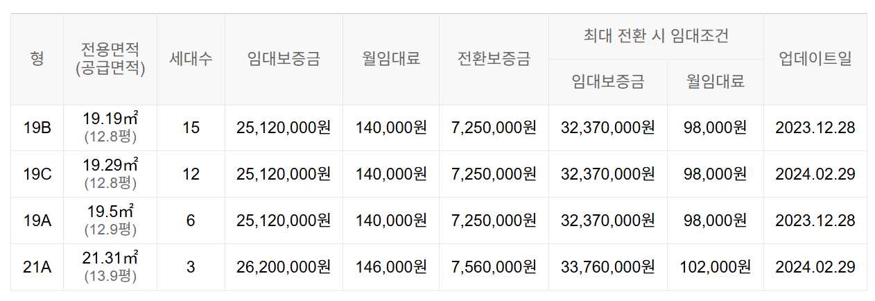 임대보증금 및 월 임대료는 입주자 모집공고일 기준이며, 보증금 최대 전환 시 변동될 수 있습니다.