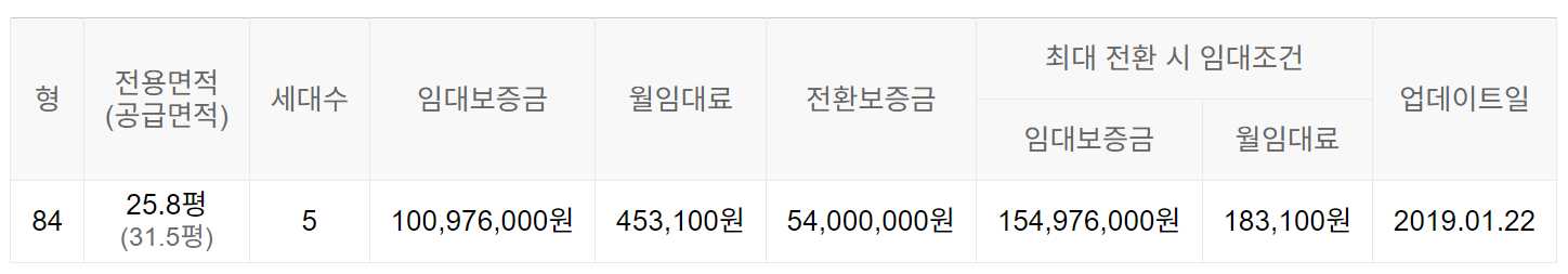 임대보증금 및 월 임대료는 입주자 모집공고일 기준이며, 보증금 최대 전환 시 변동될 수 있습니다.