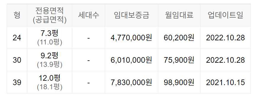 임대보증금 및 월 임대료는 입주자 모집공고일 기준이며, 보증금 최대 전환 시 변동될 수 있습니다.