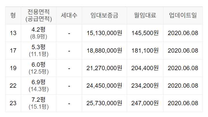 임대보증금 및 월 임대료는 입주자 모집공고일 기준이며, 보증금 최대 전환 시 변동될 수 있습니다.