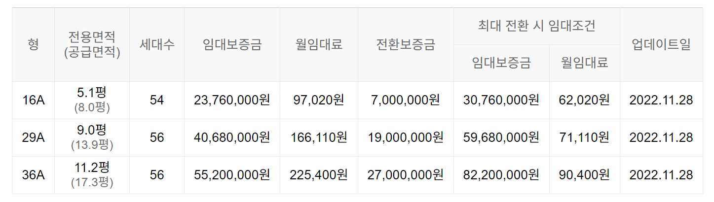 임대보증금 및 월 임대료는 입주자 모집공고일 기준이며, 보증금 최대 전환 시 변동될 수 있습니다.