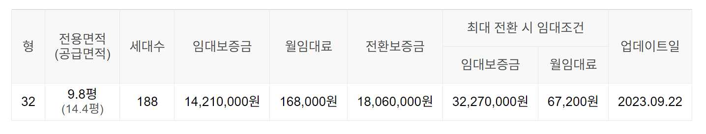 임대보증금 및 월 임대료는 입주자 모집공고일 기준이며, 보증금 최대 전환 시 변동될 수 있습니다.