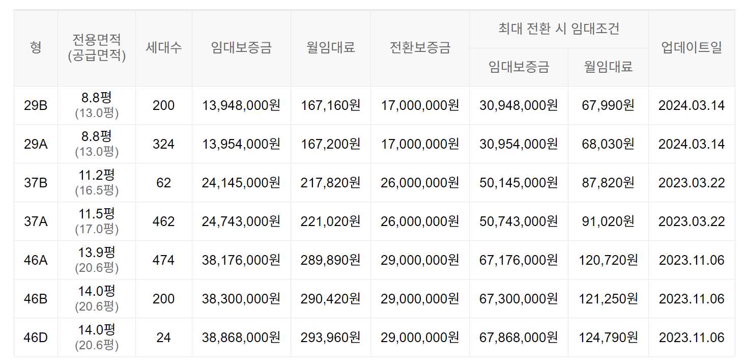 임대보증금 및 월 임대료는 입주자 모집공고일 기준이며, 보증금 최대 전환 시 변동될 수 있습니다.