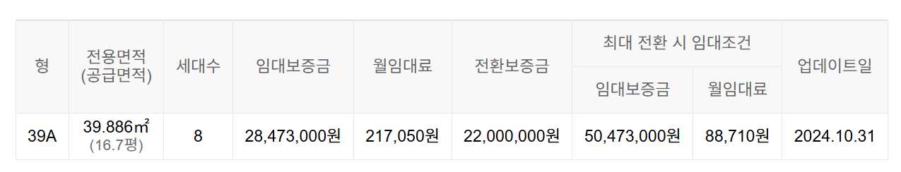 임대보증금 및 월 임대료는 입주자 모집공고일 기준이며, 보증금 최대 전환 시 변동될 수 있습니다.