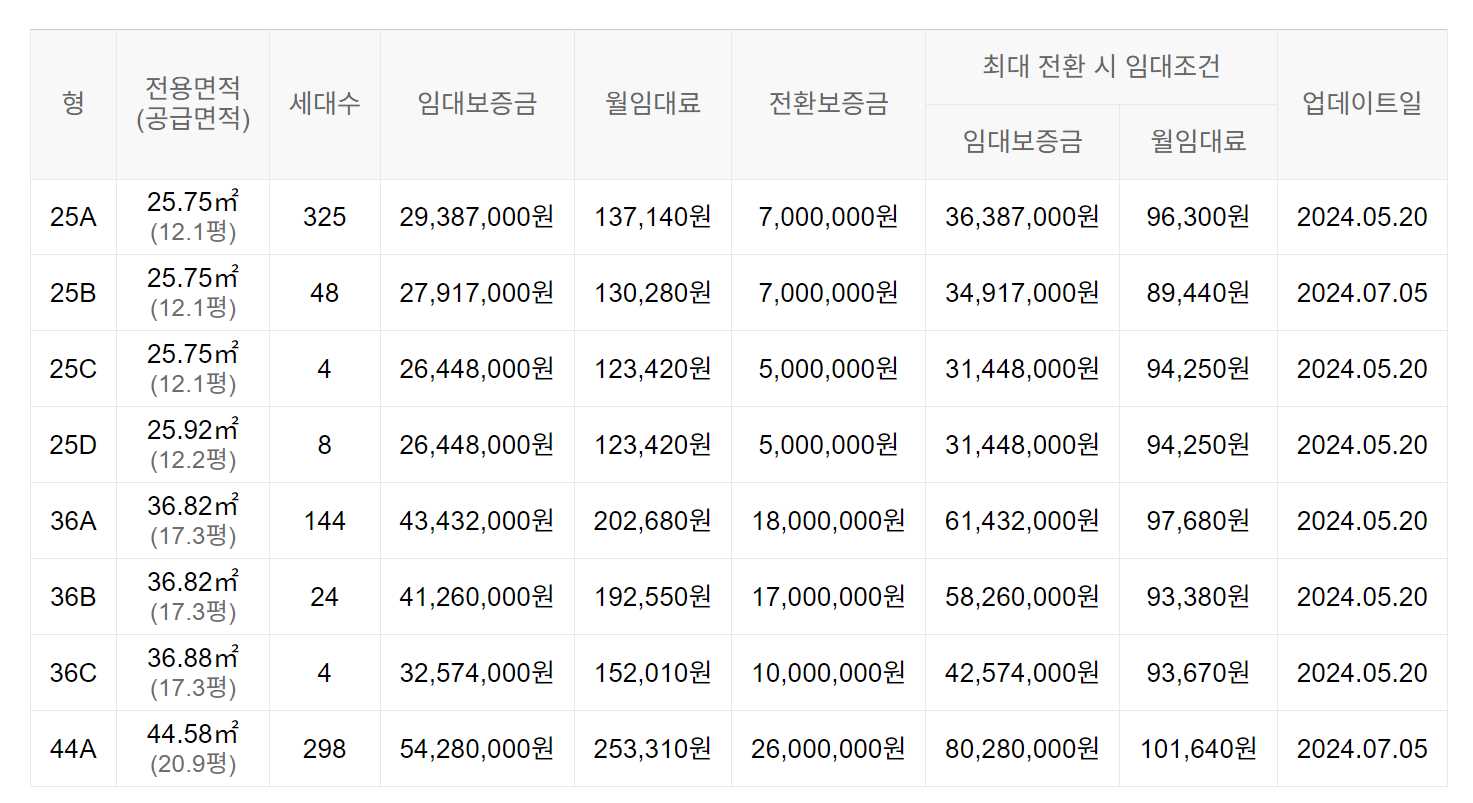 임대보증금 및 월 임대료는 입주자 모집공고일 기준이며, 보증금 최대 전환 시 변동될 수 있습니다.