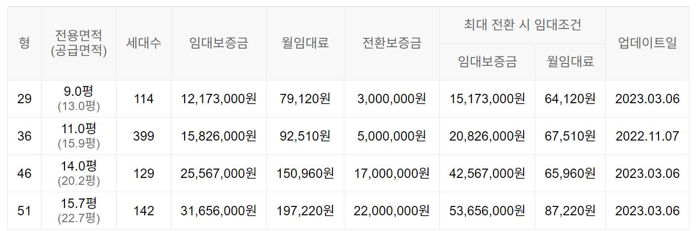 임대보증금 및 월 임대료는 입주자 모집공고일 기준이며, 보증금 최대 전환 시 변동될 수 있습니다.