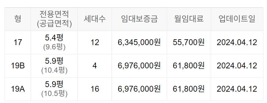 임대보증금 및 월 임대료는 입주자 모집공고일 기준이며, 보증금 최대 전환 시 변동될 수 있습니다.