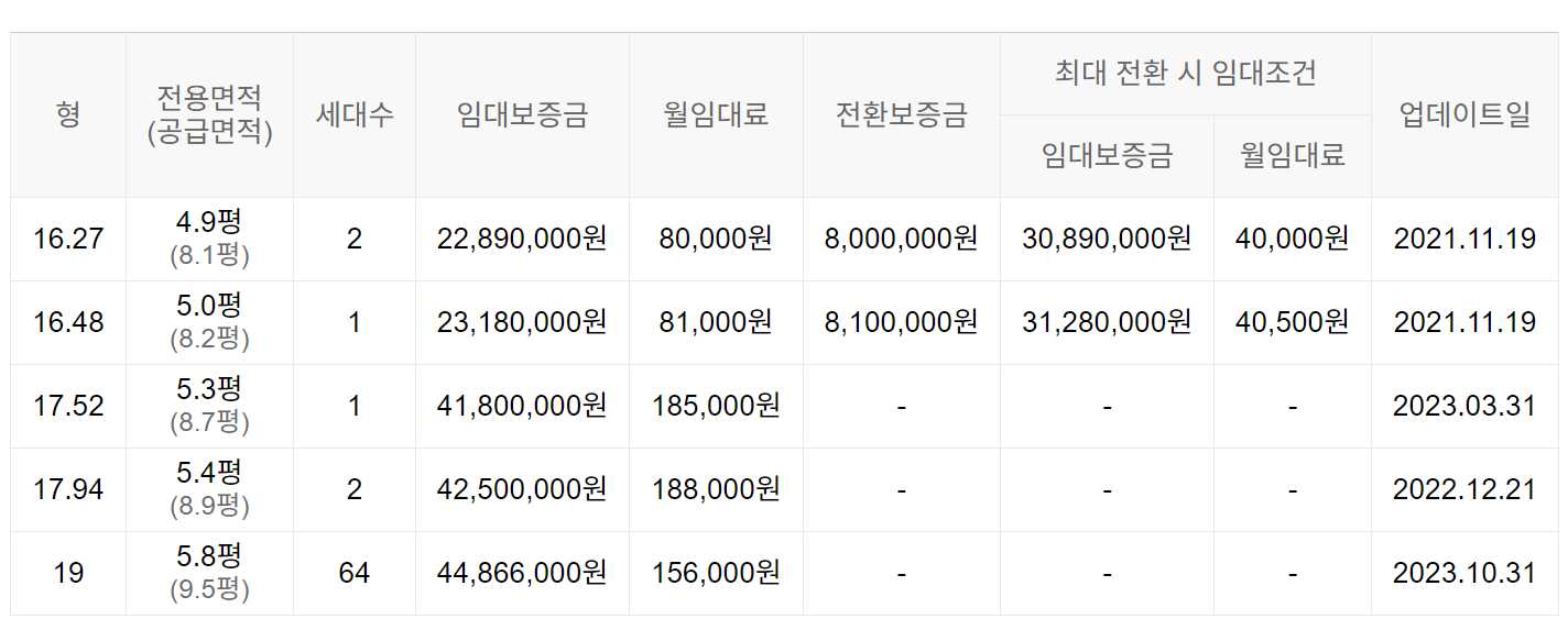 임대보증금 및 월 임대료는 입주자 모집공고일 기준이며, 보증금 최대 전환 시 변동될 수 있습니다.