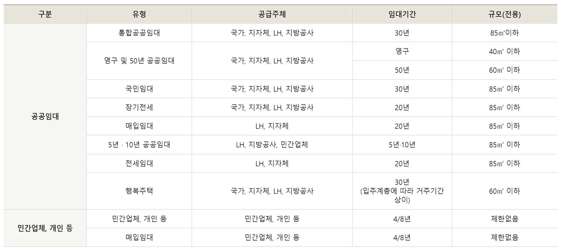 - 5년/10년공공임대 5년/10년 임대, 85 ㎡ 이하