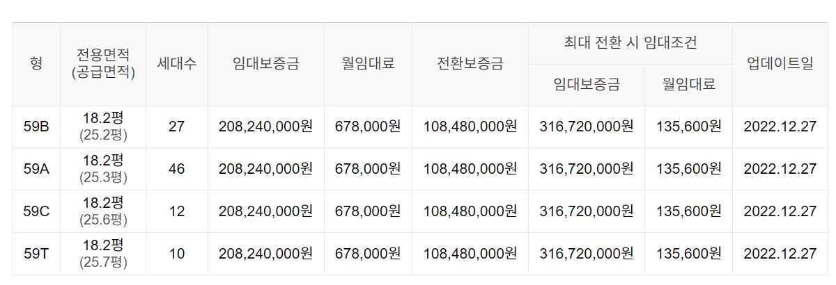 임대보증금 및 월 임대료는 입주자 모집공고일 기준이며, 보증금 최대 전환 시 변동될 수 있습니다.