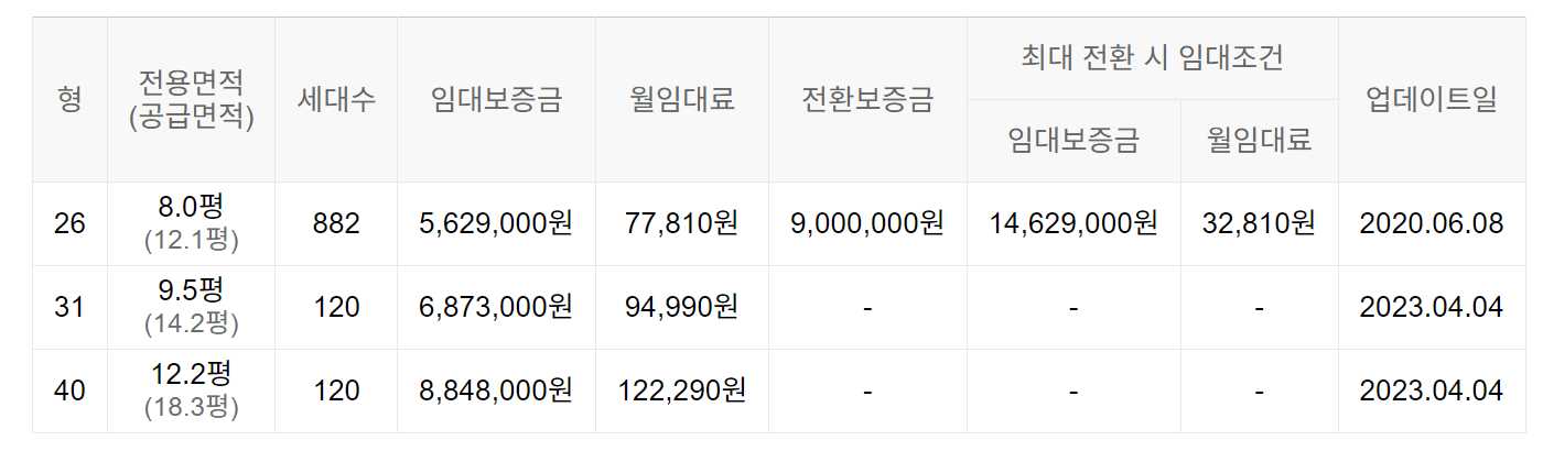 임대보증금 및 월 임대료는 입주자 모집공고일 기준이며, 보증금 최대 전환 시 변동될 수 있습니다.