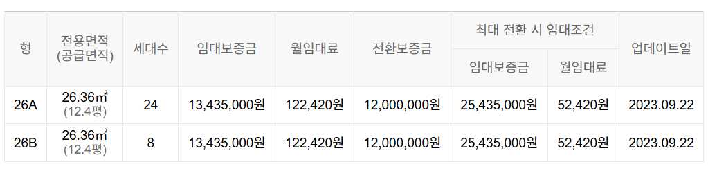 임대보증금 및 월 임대료는 입주자 모집공고일 기준이며, 보증금 최대 전환 시 변동될 수 있습니다.
