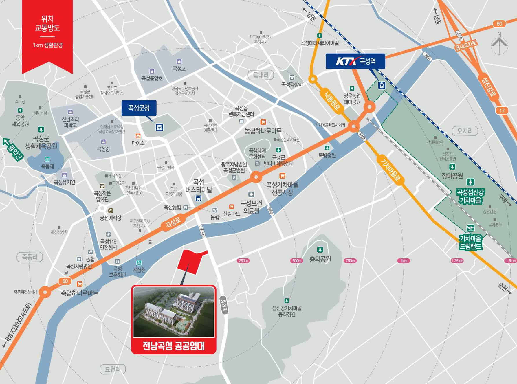 곡성터미널, 곡성역(경전선), 국도 및 고속도로 접근 등 대중교통 및 도로망이 양호 zippoom.com
