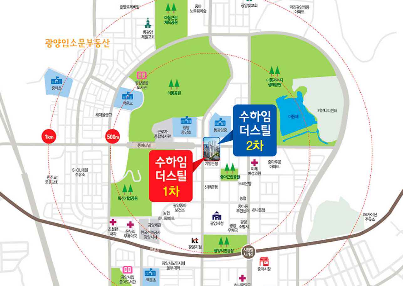 단지 인근 병원, 의원·약국 밀집, 광양시청·CGV 등 생활 인프라 동시 접근 가능