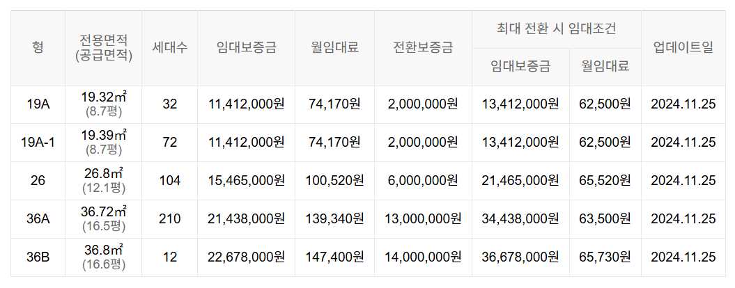 임대보증금 및 월 임대료는 입주자 모집공고일 기준이며, 보증금 최대 전환 시 변동될 수 있습니다.
