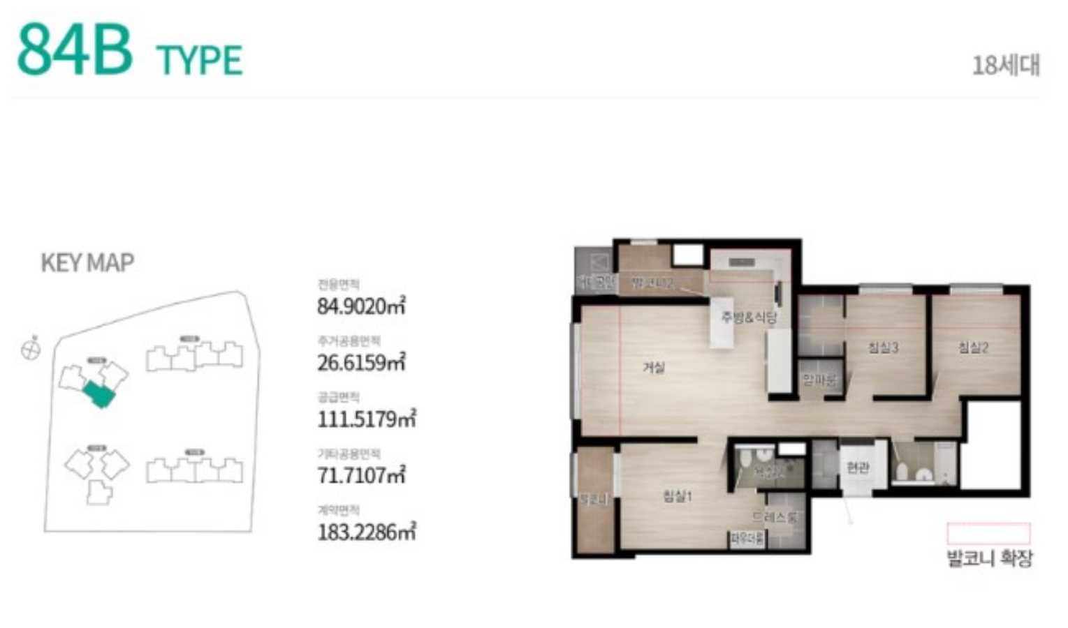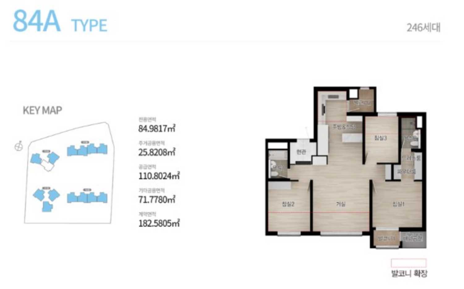 전용면적 110A·111B㎡(공급면적 기준 110.8㎡), 3베이·3룸 구조가 중심 평형이며, 주변 초등학교는 석현초등학교 도보 8분 거리입니다.