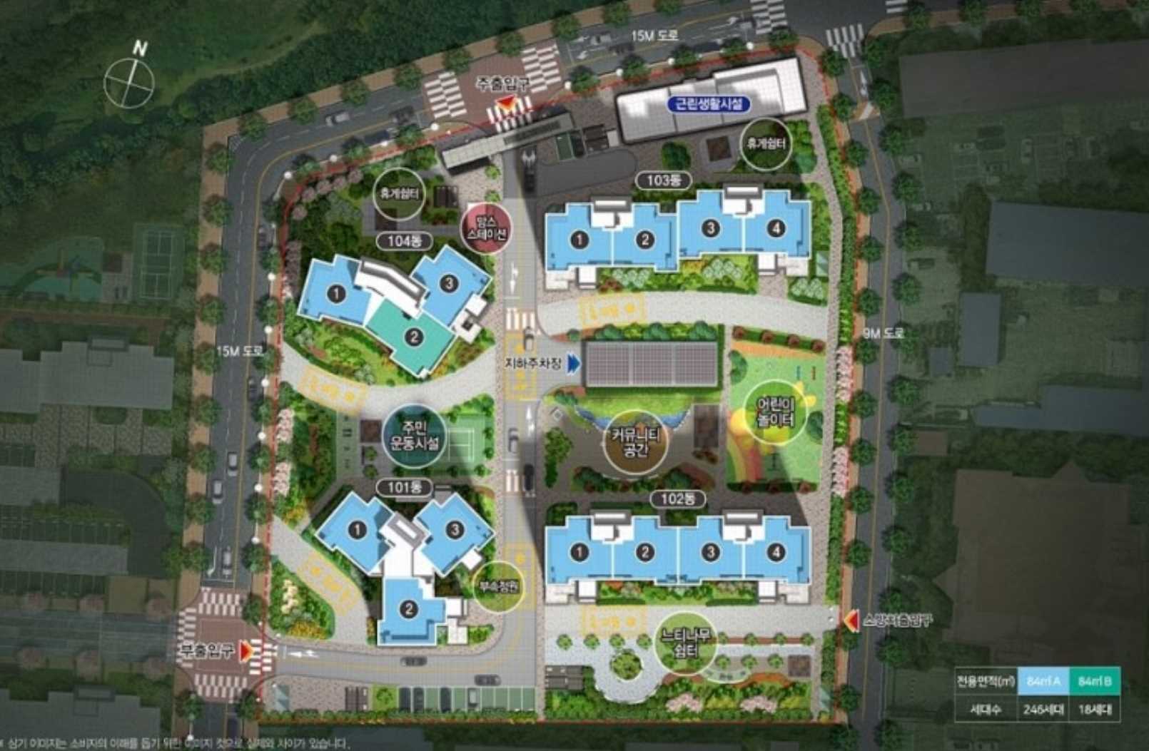 무인택배함, 어린이놀이터, 주민커뮤니티 공간, 지하·옥외주차장 (세대당 1.53대 주차 가능)