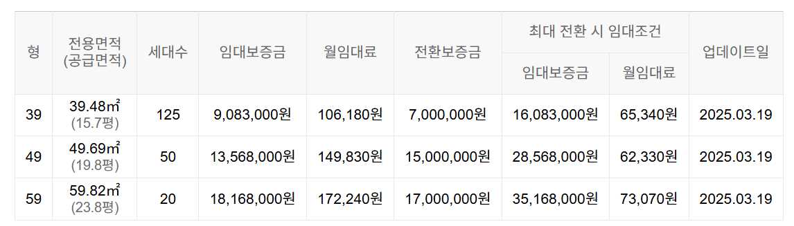 임대보증금 및 월 임대료는 입주자 모집공고일 기준이며, 보증금 최대 전환 시 변동될 수 있습니다.