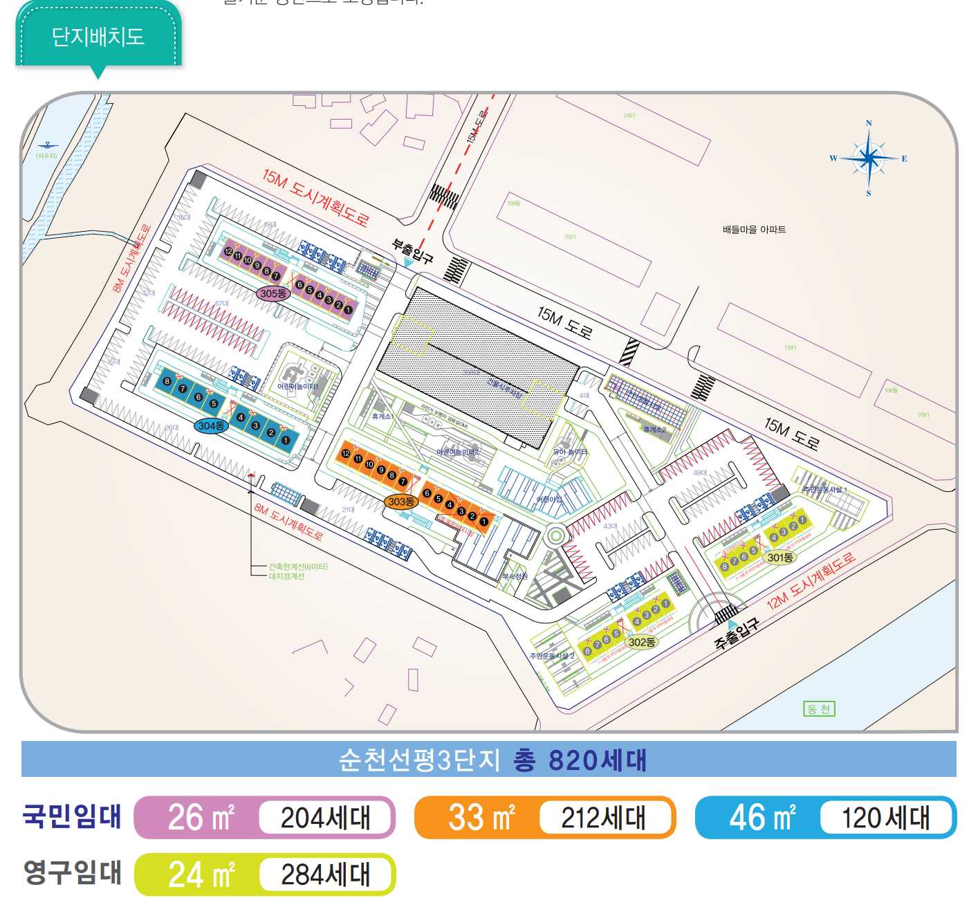 선평빛찬들 국민임대주택은 전라남도 순천시 서면 선평동선길 36에 위치한 공공임대아파트로, 2017년 11월 입주를 시작한 국민임대 + 영구임대 혼합단지입니다. 총 820세대 규모 중 국민임대는 전용면적 26㎡형, 33㎡형, 46㎡형으로 구성되어 있으며, 복도식 구조와 개별난방 방식이 적용된 실속형 주거공간입니다.