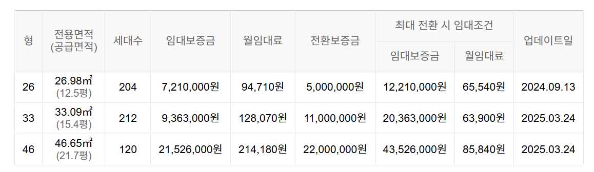 임대보증금 및 월 임대료는 입주자 모집공고일 기준이며, 보증금 최대 전환 시 변동될 수 있습니다.