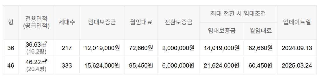 임대보증금 및 월 임대료는 입주자 모집공고일 기준이며, 보증금 최대 전환 시 변동될 수 있습니다.