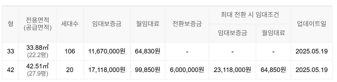 임대보증금 및 월 임대료는 입주자 모집공고일 기준이며, 보증금 최대 전환 시 변동될 수 있습니다.
