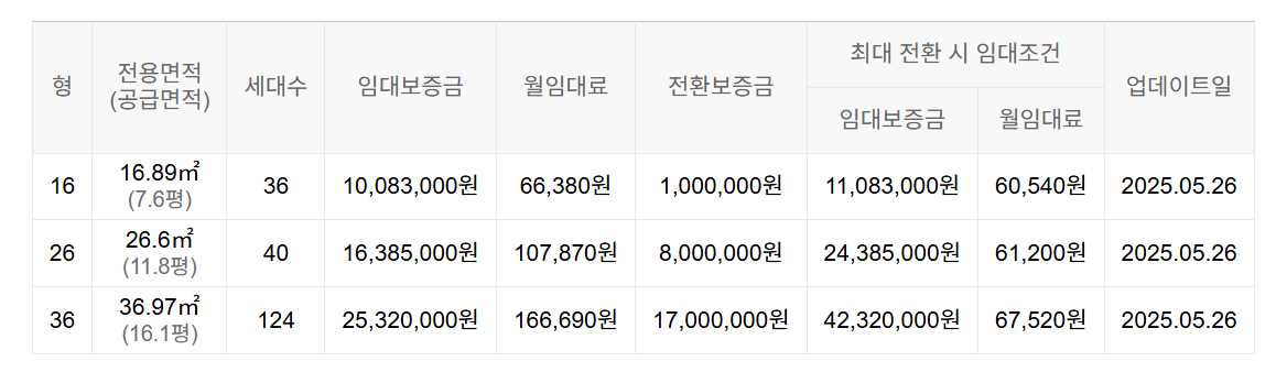 임대보증금 및 월 임대료는 입주자 모집공고일 기준이며, 보증금 최대 전환 시 변동될 수 있습니다.