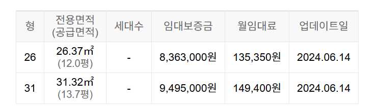 임대보증금 및 월 임대료는 입주자 모집공고일 기준이며, 보증금 최대 전환 시 변동될 수 있습니다.