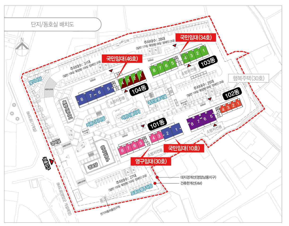 어린이놀이터, 무인택배함, 경로당, 커뮤니티시설, 주차장