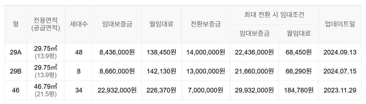 임대보증금 및 월 임대료는 입주자 모집공고일 기준이며, 보증금 최대 전환 시 변동될 수 있습니다.