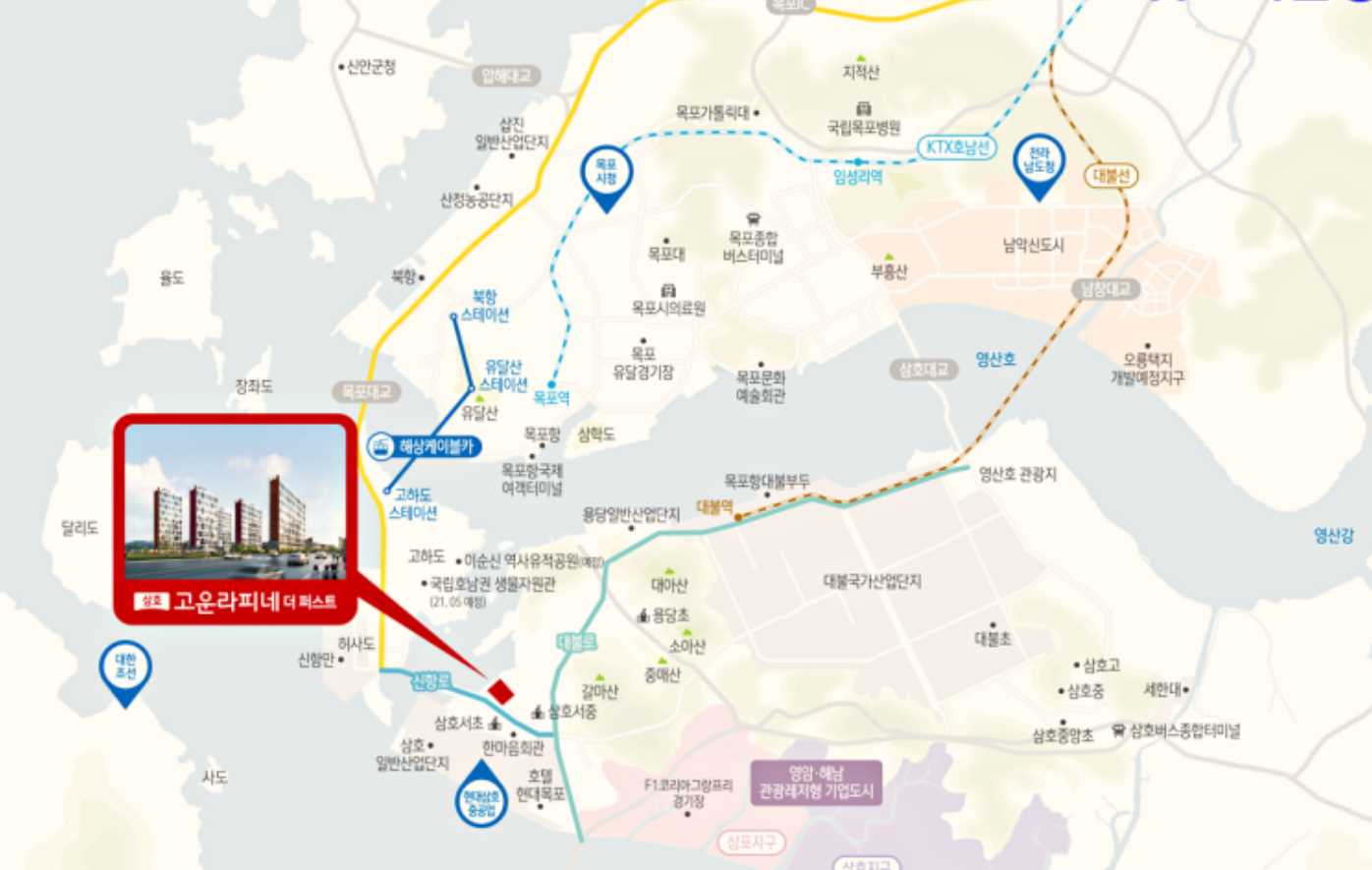신축 단지로 내부 마감 수준이 우수하며, 남악신도시 및 현대삼호중공업과의 접근성이 좋아 직주근접 생활이 가능한 점이 큰 장점입니다. 세대 구성은 중소형 중심으로 실속 있는 평면이 특징이며, 가족 단위 거주자들에게도 알맞은 환경을 제공합니다.