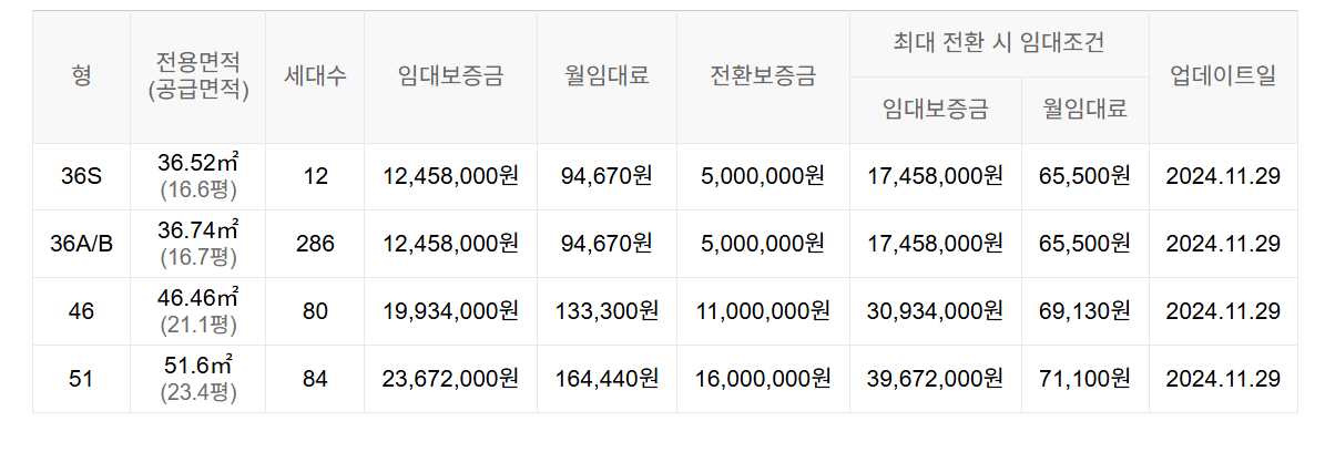 임대보증금 및 월 임대료는 입주자 모집공고일 기준이며, 보증금 최대 전환 시 변동될 수 있습니다.