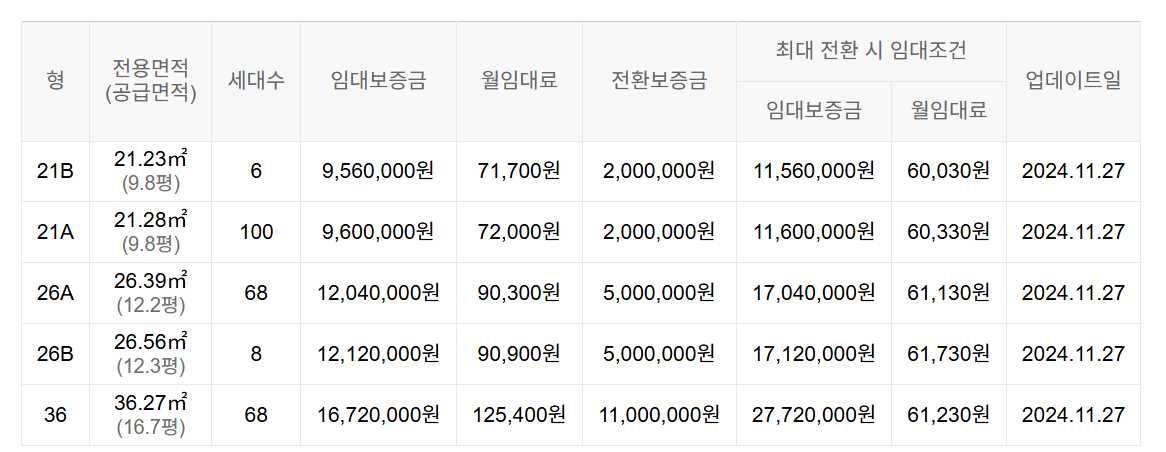 임대보증금 및 월 임대료는 입주자 모집공고일 기준이며, 보증금 최대 전환 시 변동될 수 있습니다.