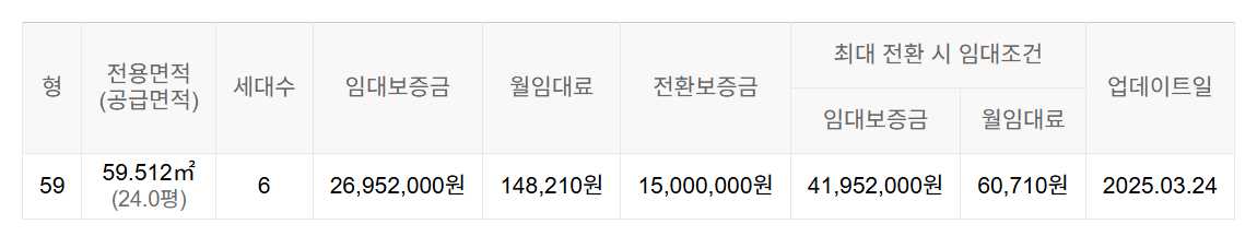 임대보증금 및 월 임대료는 입주자 모집공고일 기준이며, 보증금 최대 전환 시 변동될 수 있습니다.