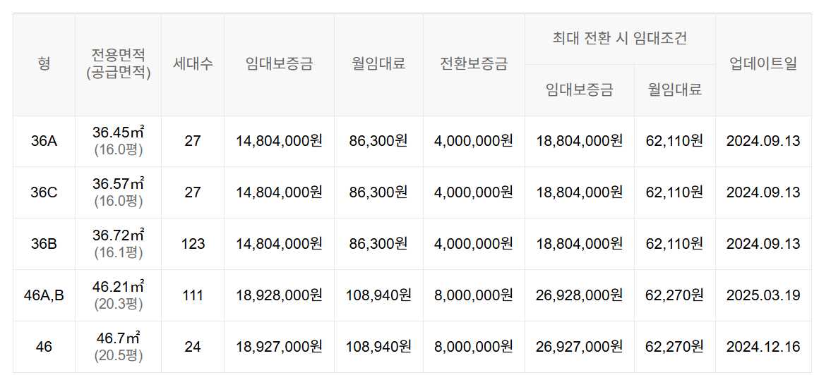 임대보증금 및 월 임대료는 입주자 모집공고일 기준이며, 보증금 최대 전환 시 변동될 수 있습니다.