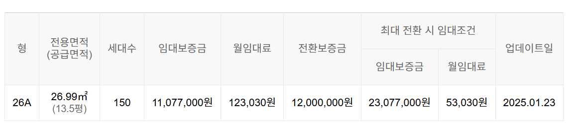 임대보증금 및 월 임대료는 입주자 모집공고일 기준이며, 보증금 최대 전환 시 변동될 수 있습니다.